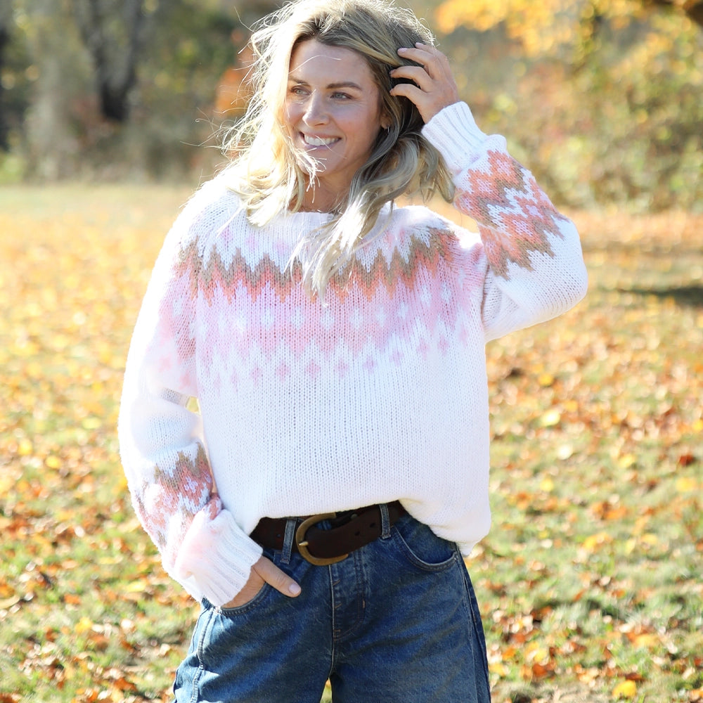 "This sweater is all about fall—my favorite time of year! I get loads of compliments on all my Wooden Ships sweaters!"