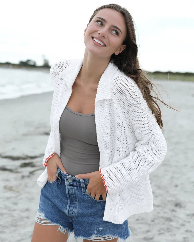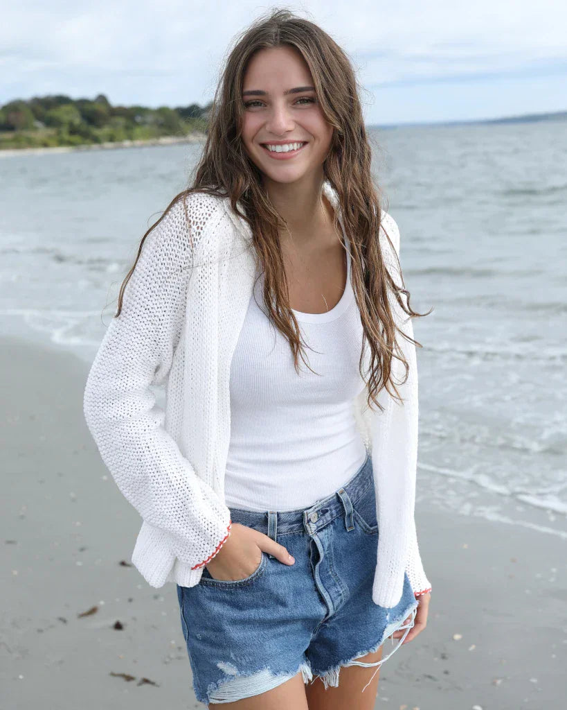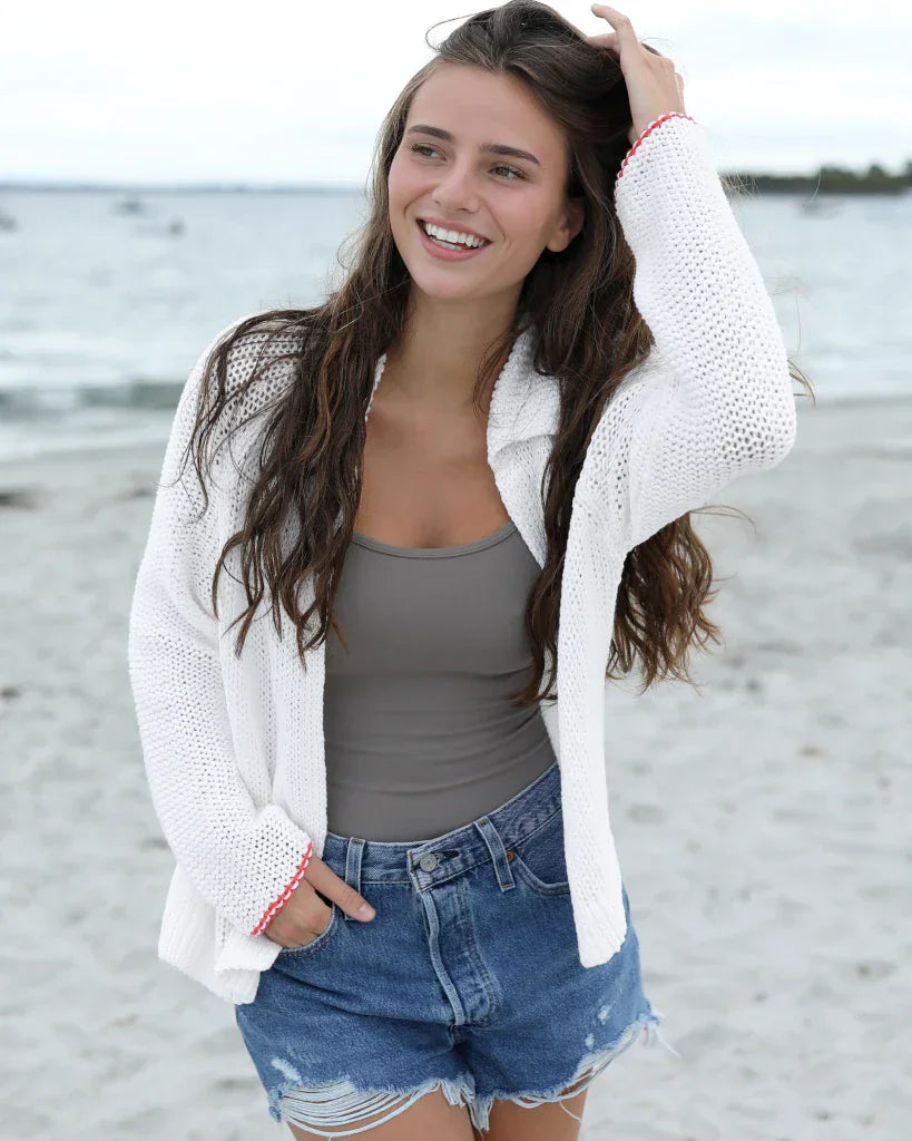 A little love, from every angle. The Heart Back Chunky Cardi Cotton is a cozy, romantic layer crafted from soft cotton yarn with a chunky knit feel that’s just right for transitional spring weather—warm when you need it, breathable when the day brightens up.