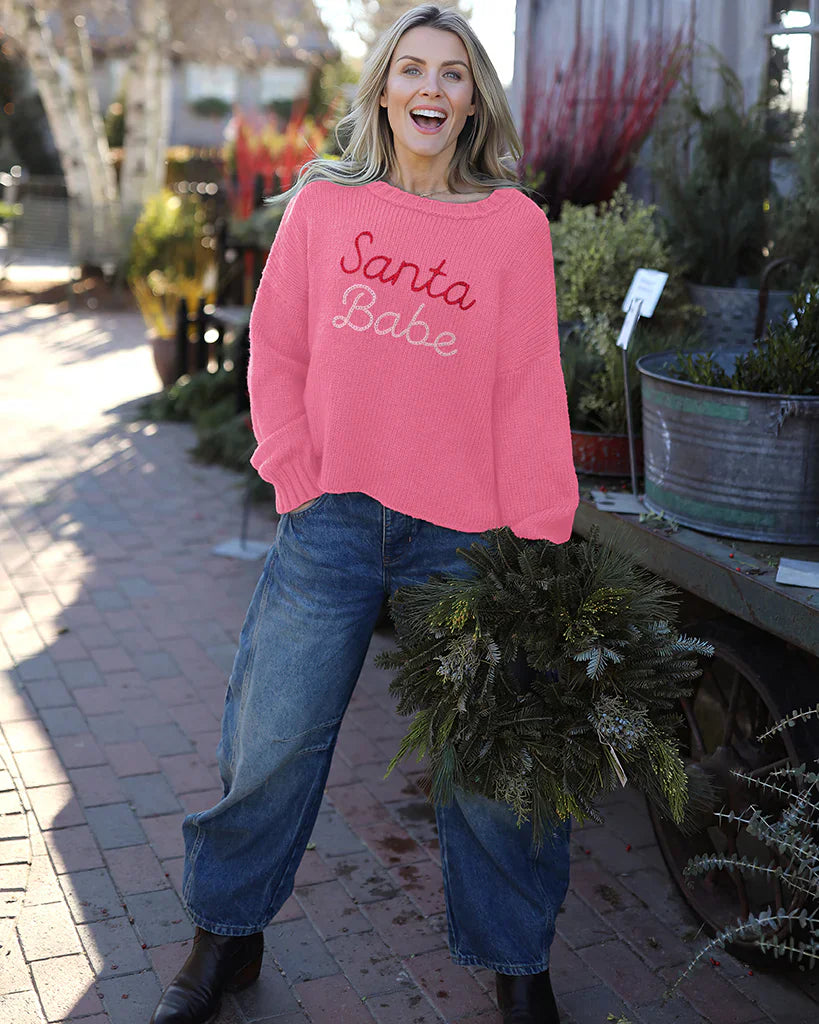 SANTA BABE EMBROIDERED CREW CHUNKY
