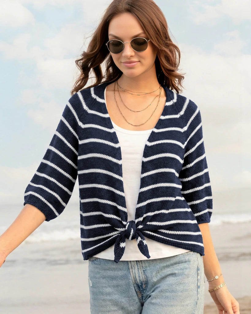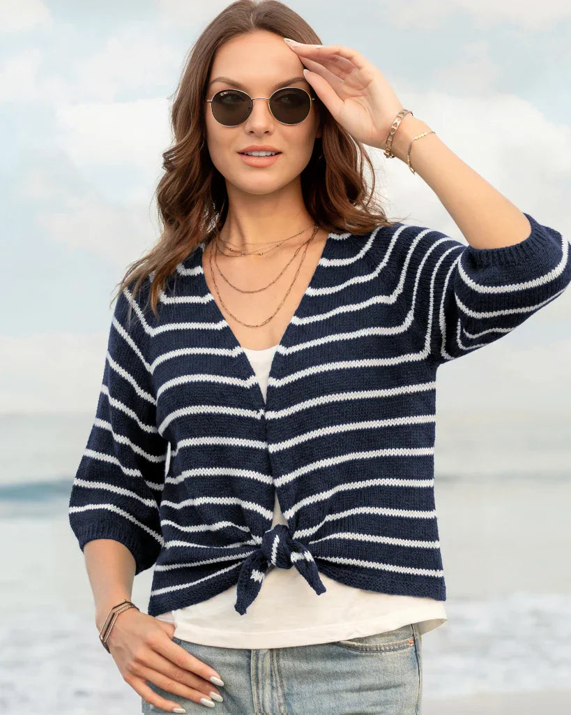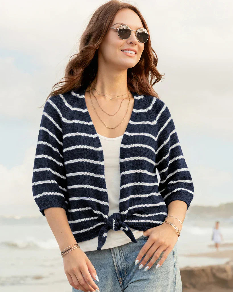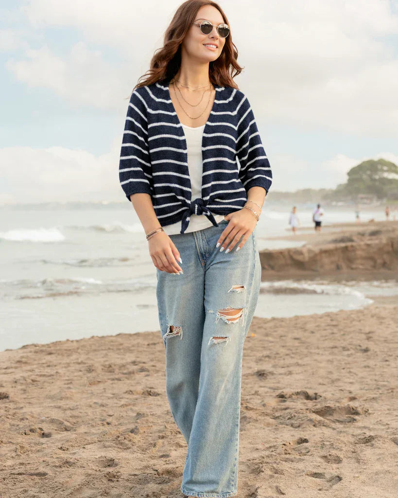 *SALE* - HELENE STRIPED 3/4 SLEEVE CARDI COTTON