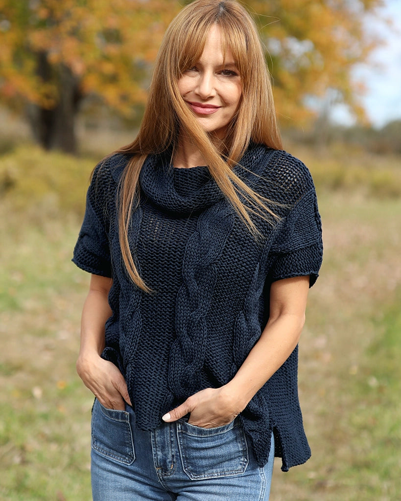 The textured cable design adds a sophisticated touch, while the breathable feel makes it easy to style from day to night. Pair it with high-waisted bottoms for an effortlessly chic look.