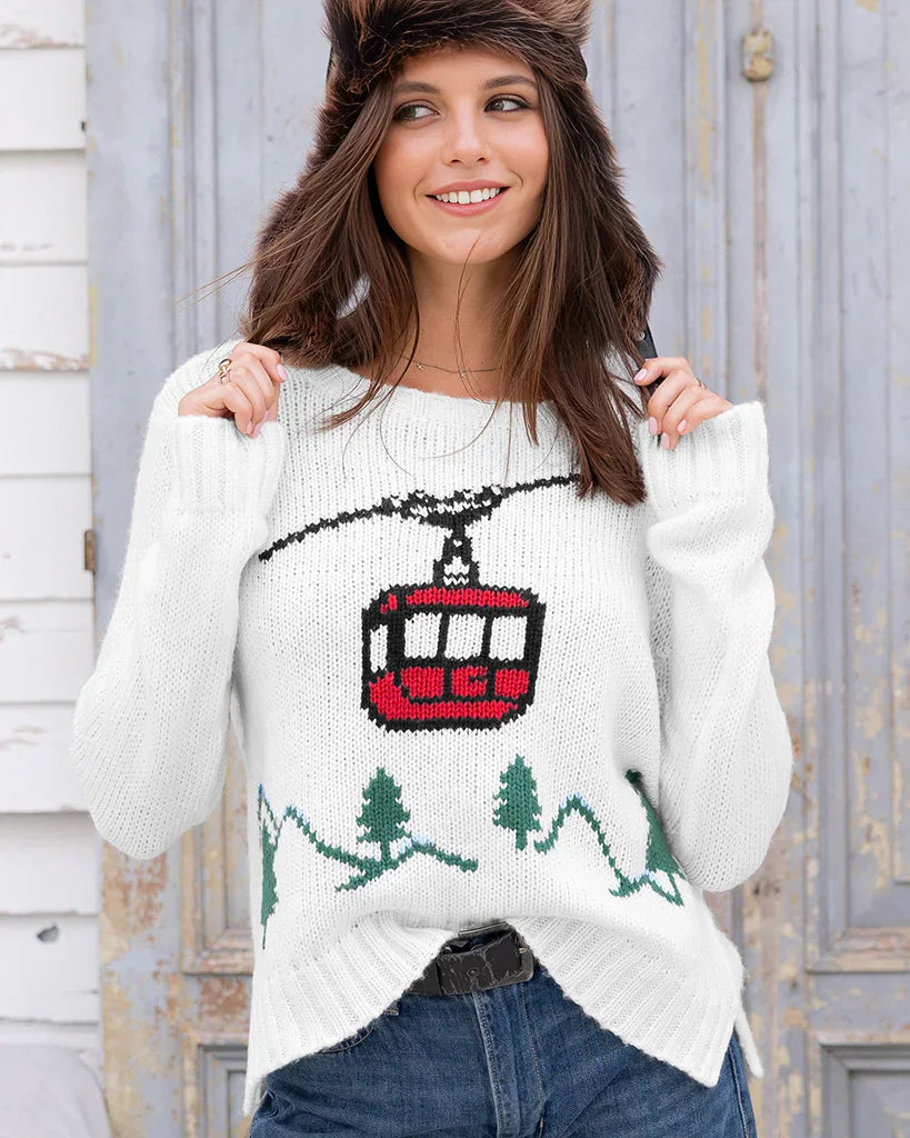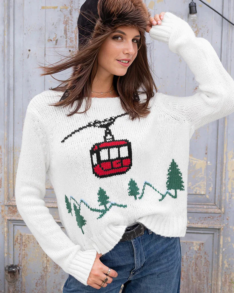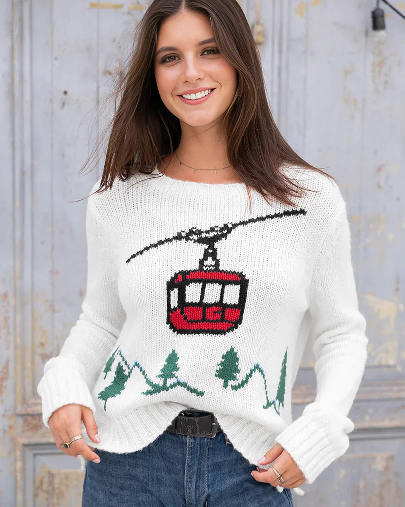 Incredibly soft and cozy, this crewneck is crafted from our luxurious wool blend. Featuring a Telluride-inspired graphic with pine trees for a playful winter vibe. Designed with inset sleeves, ribbed finishes, and subtle side slits for a relaxed, comfortable fit.
