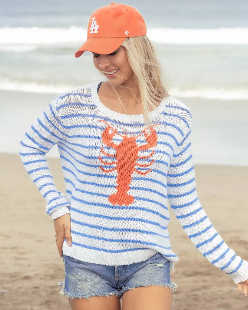 Incredibly soft and lightweight, this cotton-blend crew features chic stripes, making it a must-have. With a lobster graphic knitted directly into the center, this sweater effortlessly combines style and comfort. Thoughtful details include a ribbed neckline, cuffs, and hem, mini side slits, and a relaxed-fit body. It’s perfect for days by the beach.