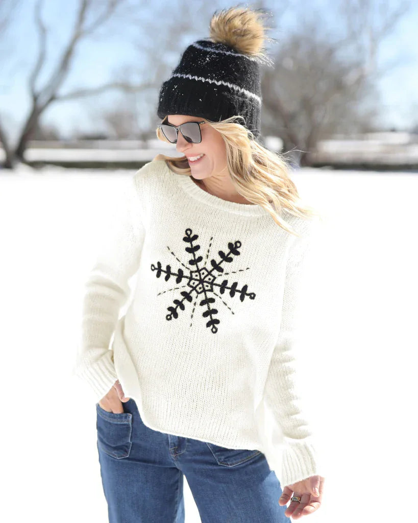 Incredibly soft and cozy, this crewneck is crafted from our luxurious wool blend. Featuring an embroidered snowflake graphic at the center for a refined winter look. Designed with inset sleeves, ribbed finishing at neckline and cuffs, and side slits for a casual, comfortable fit.