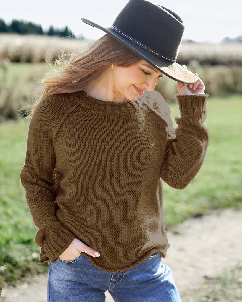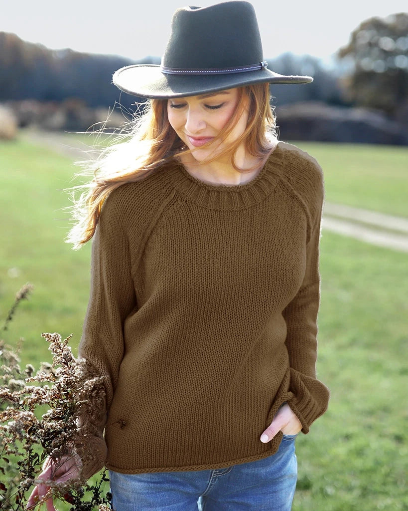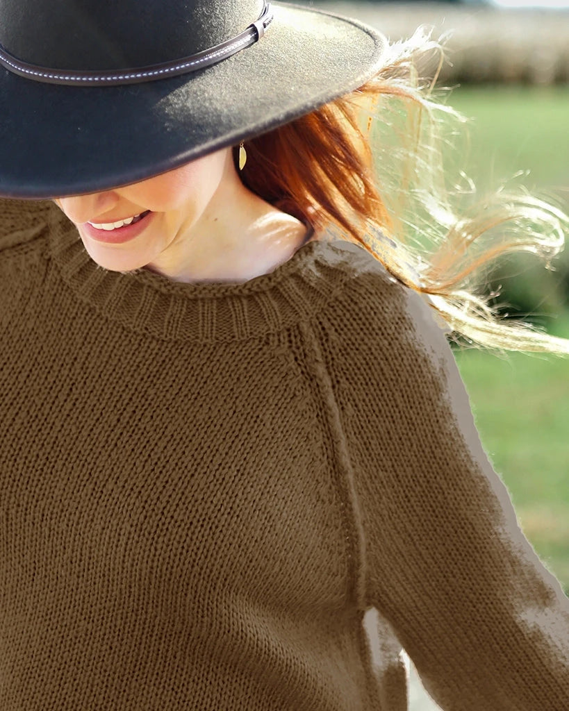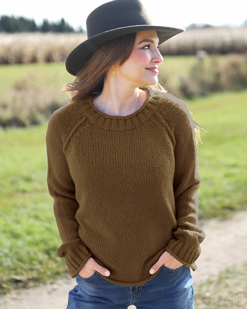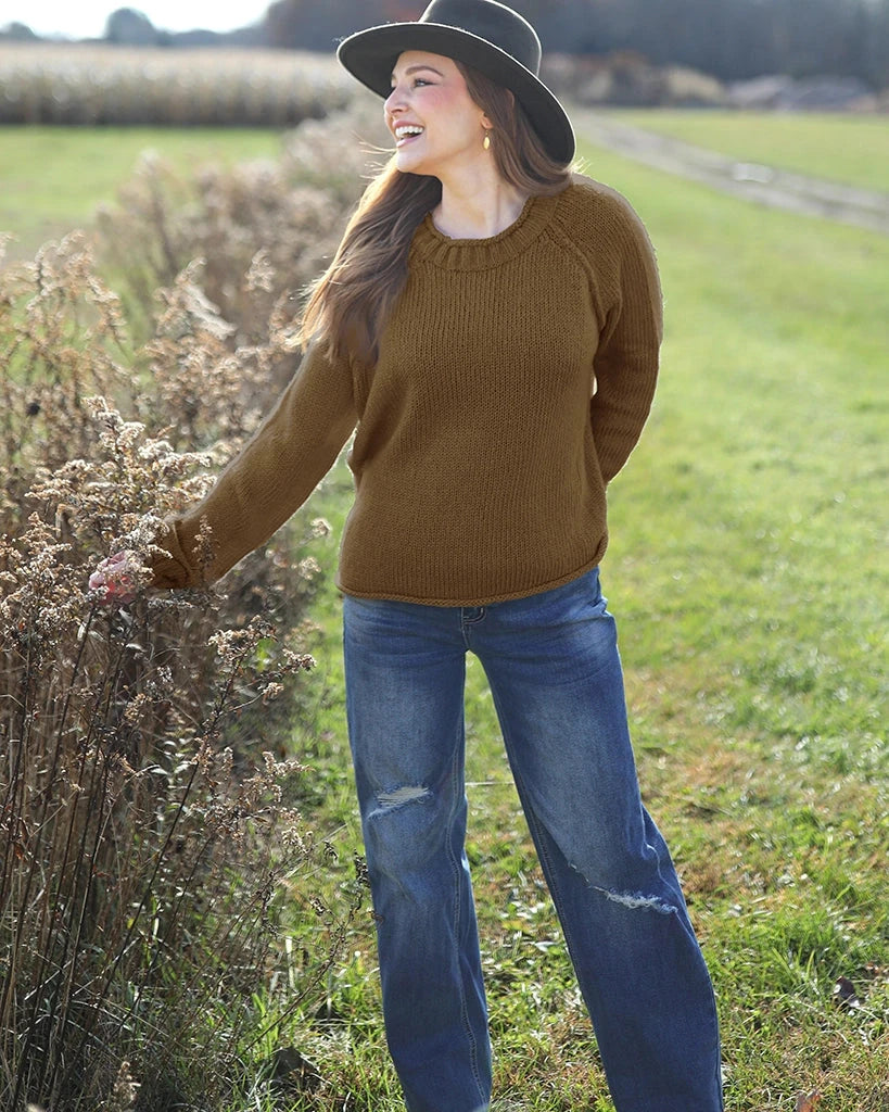 This sweater combines modern design with timeless appeal, making it a must-have. The raglan sleeves with exposed seaming offers a stylish update. The classic ribbed crew neckline and cuffs are enhanced with a delicate rolled edge finish complementing the rolled edge hem for a casual, easy to wear style. Whether you're heading out for a fun day with friends or cozying up at home, this sweater will keep you looking stylish and feeling comfortable.