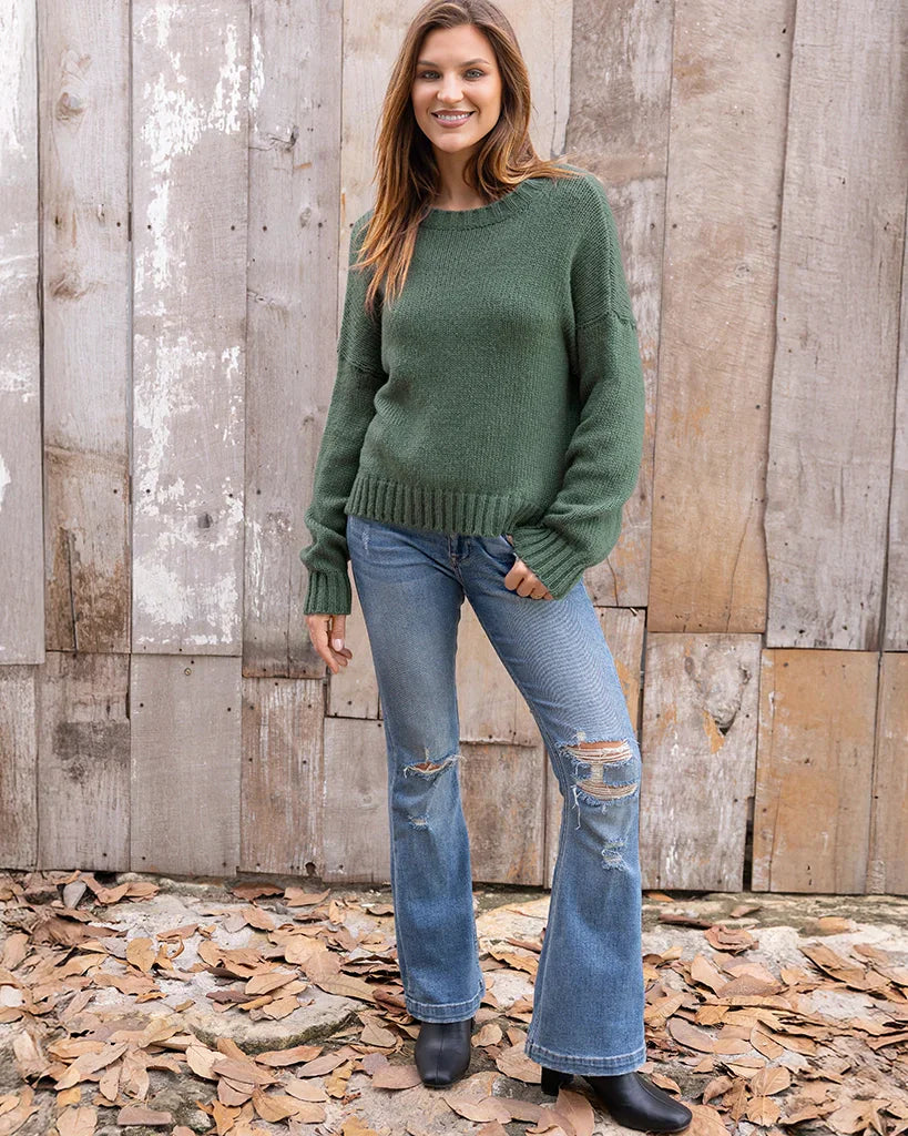 Cozy and effortlessly stylish, this sweater is designed with a classic crew neckline and drop sleeves for a relaxed silhouette. Finished with ribbed edges at the neckline, cuffs, and hem, plus subtle side slits for added comfort and movement. A perfect everyday knit that combines ease with timeless appeal.