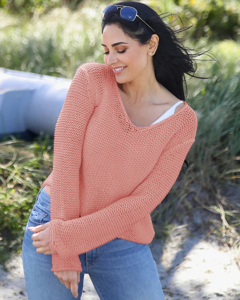 Meet your new favorite everyday knit! This soft, lightweight, and breathable top is knit with an open construction for an airy feel. The cropped, boxy fit, balanced with a deep V is super flattering and keeps you feeling cool. Knit using our cotton blend yarn, this versatile top works perfectly with denim or as a cover-up over a bathing suit.