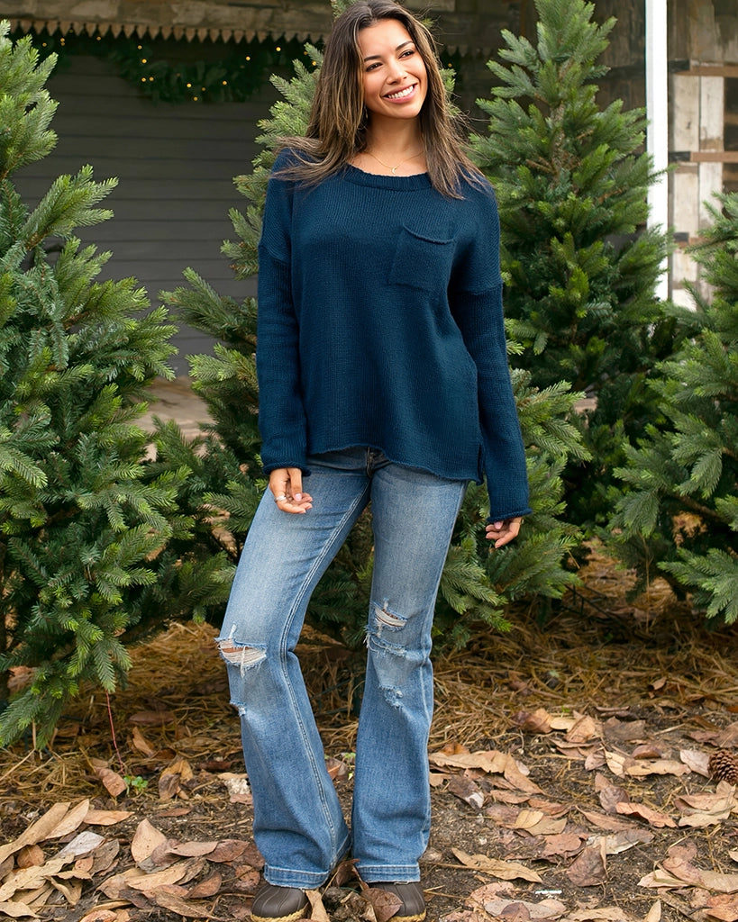 Incredibly soft, lightweight, and airy crew. The ribbing on the neckline keeps you casual while also making the top light and airy. A cute little pocket adds a touch of fun to this flattering boxy top. This will be your favorite to throw over just about any outfit.