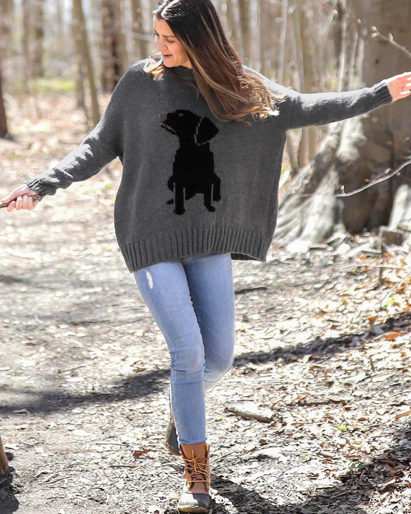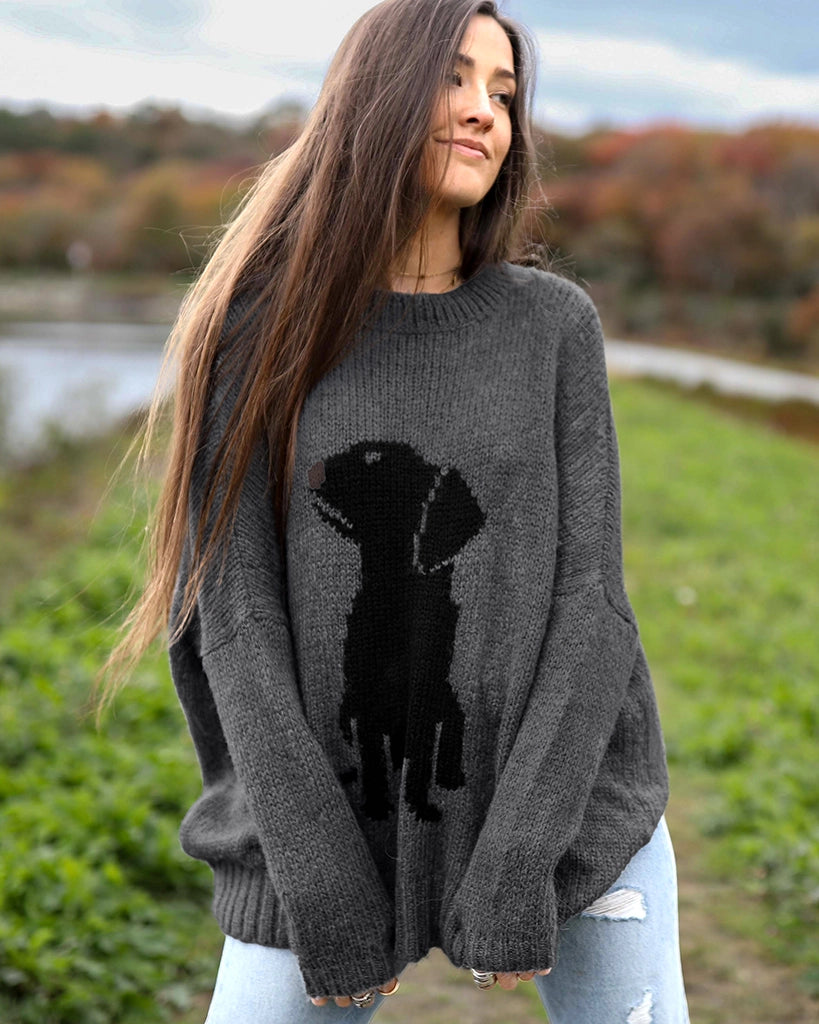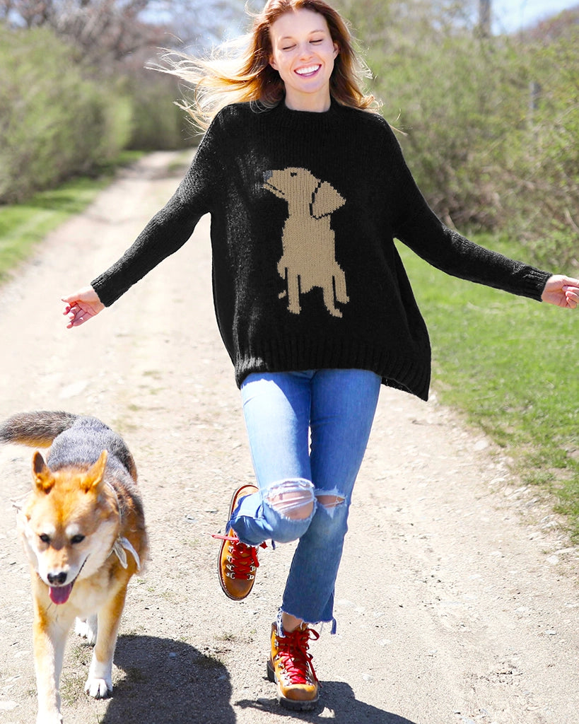 Crafted from a cozy wool blend, this relaxed crew sweater features a playful labrador knit graphic on the front. Designed with dropped shoulders for a casual, boyfriend-style fit. Finished with ribbed detailing at the neckline, cuffs. Perfect for staying warm and cute all winter long.