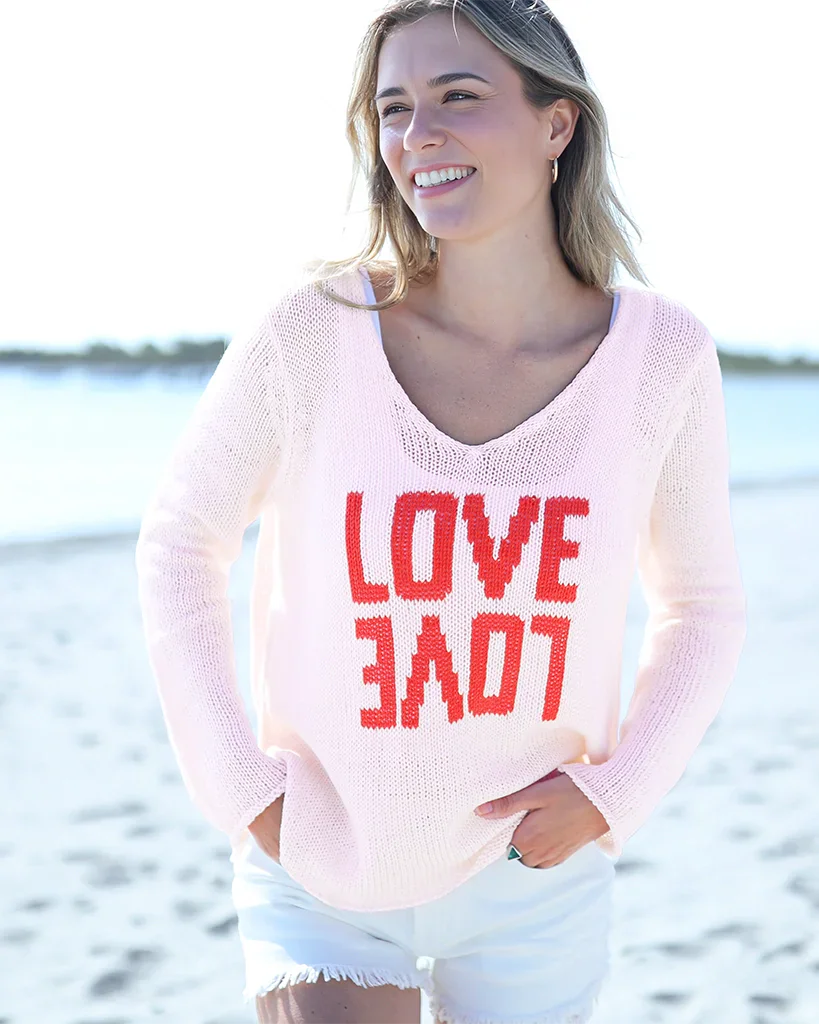 Double the love, double the charm. The LOVE V COTTON sweater is a cozy, romantic knit made for Spring’s soft breezes and sunlit days.