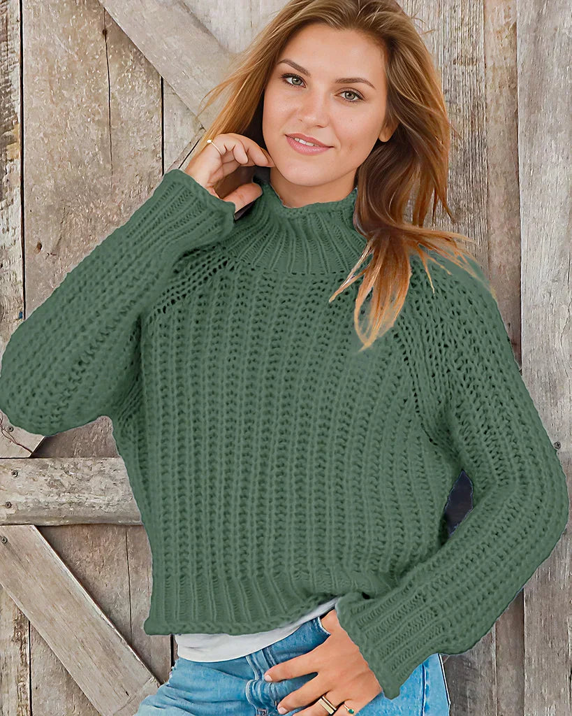 This super soft and cozy t neck has a relaxed fit body that is slightly cropped. The chunky knit features an open construction for a cozy, textured knit that will keep you comfortable. Details include a raglan sleeve and super cozy, wide ribbing on the neck, hem and cuffs.